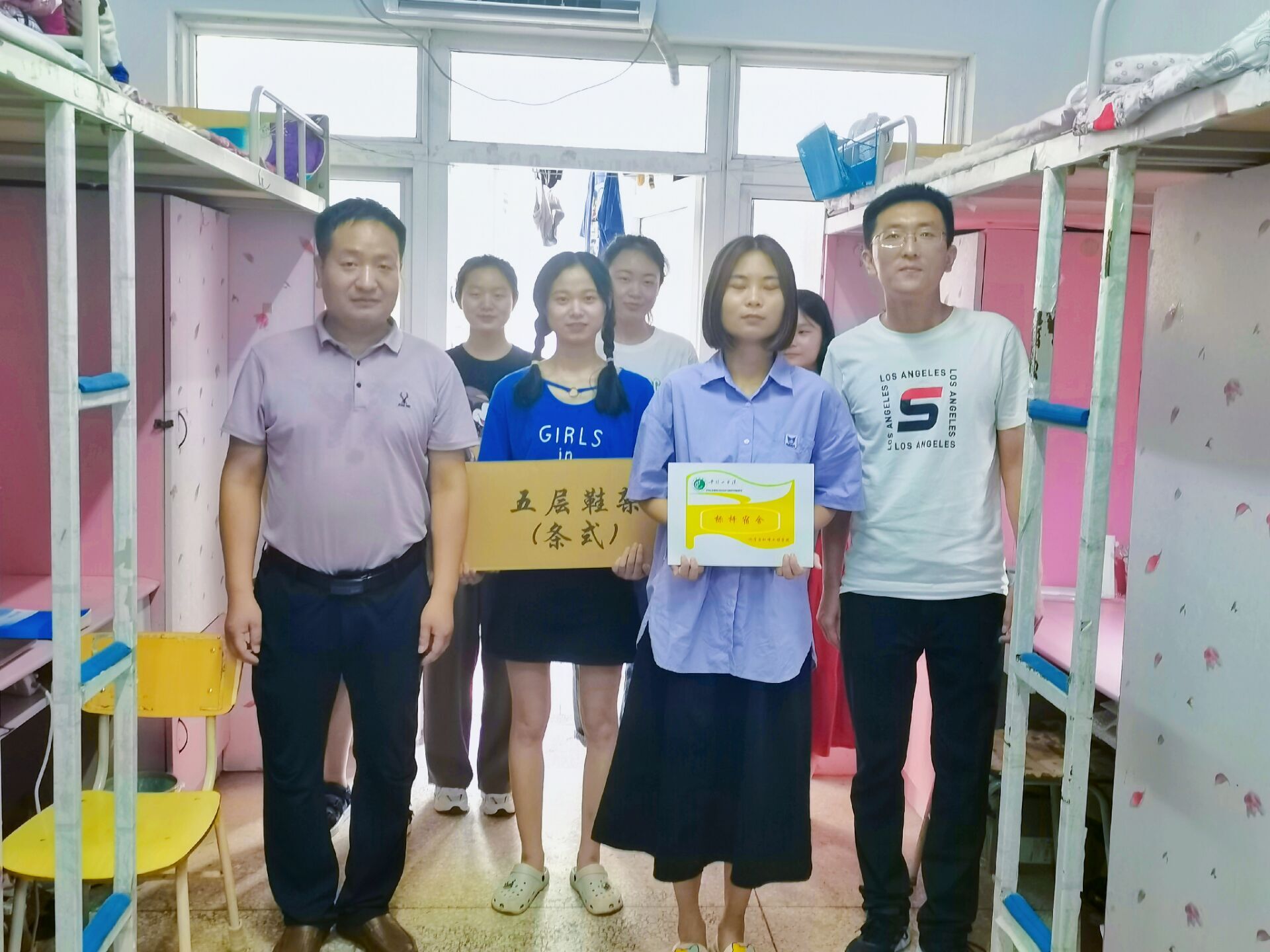 6月29日下午16:00,3003新葡官方网站开展标杆宿舍授牌颁奖活动,党委副书记贺国旭、辅导员老师深入学生宿舍为本学期20间标杆宿舍授牌颁奖。