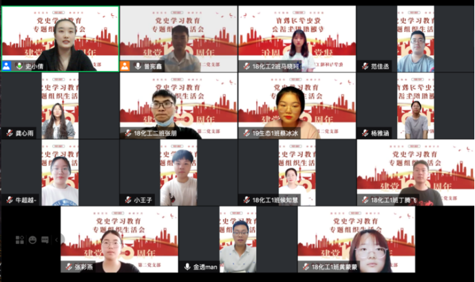 学生第二党支部书记史小倩主持开展线上专题组织生活会,在支部委员与党员进行谈心谈话,了解支部党员的学习情况和思想需求的基础上,结合党史学习教育的感悟,认真开展批评和自我批评,支部成员坦诚相对,对于要创新党支部活动方式、提升支部成员学习效果实效性也提出了可行性建议。