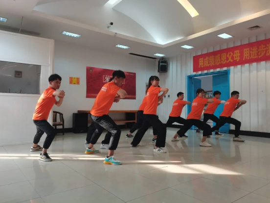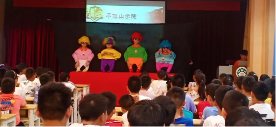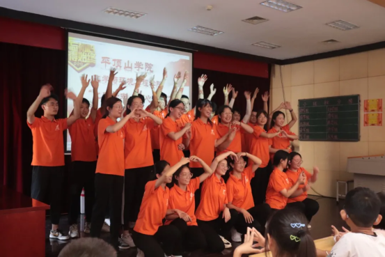 志愿者给大家准备的舞蹈《韭菜花开和小跳蛙》,给学生们营造了轻松愉悦的气氛,引得大家哈哈大笑,赢得了同学们的热烈欢呼。