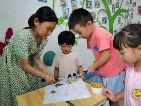 中国传统文化是中华民族千百年来智慧的结晶,引领青少年重视学习传统文化,势在必行。拓印技术作为我国印刷术发明的前驱,具有特殊的魅力和极强的观赏性。7月18日下午,平顶山学院3003新葡官方网站“化环青志 爱心助梦”关爱留守儿童服务团队以“童心童画,拓印赋彩”为主题,为鲁山县文智留守儿童学校的同学们举办了一场趣味横生的植物拓印专题活动。