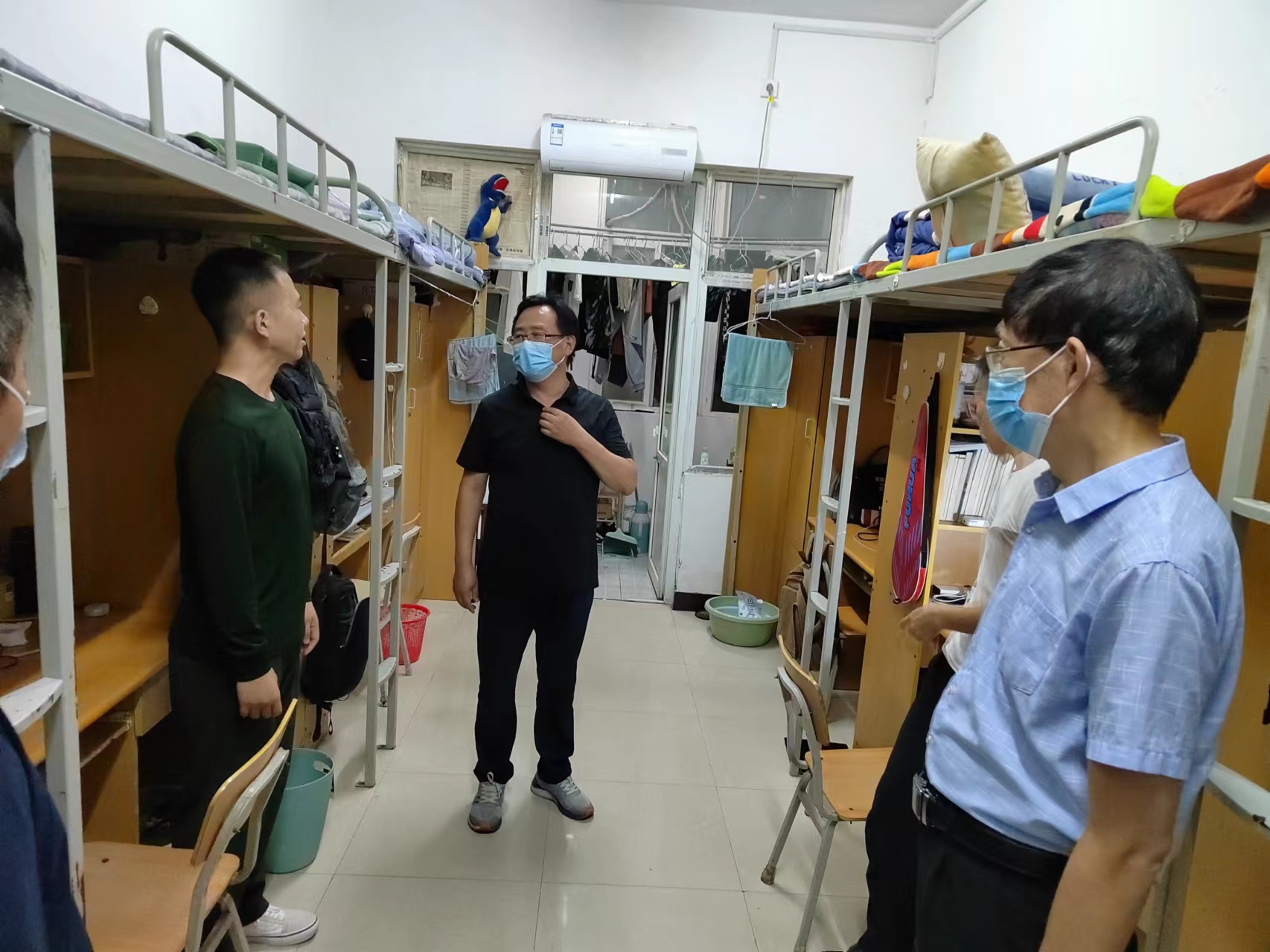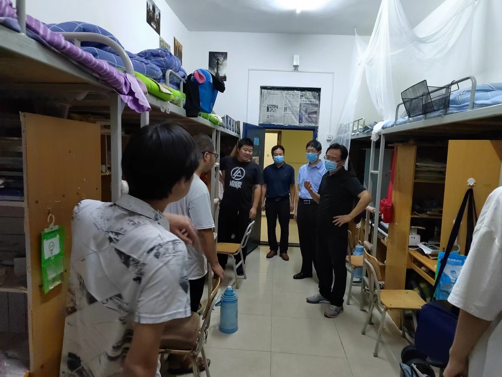 为及时了解学生的思想动态,提高学生宿舍安全卫生意识,营造舒适学习氛围。10月2日晚副校长侯延民深入3003新葡官方网站学生宿舍走访慰问,新葡官网院长李青彬深入学生宿舍,副书记贺国旭以及辅导员老师陪同走访。