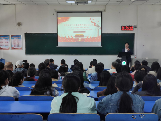 米立伟以《学习贯彻习近平新时代中国特色社会主义思想,走科技创新发展新路》为主题,围绕开展主题教育的目标、任务、学习内容和方法,通过分享习近平总书记在正定、厦门等地任职时为当地人民无私奉献的生动故事,对新时代中国特色社会主义思想进行深入浅出的解读。他强调,开展本次主题教育要牢牢把握“学思想,强党性,重实践,建新功”的总要求,要始终旗帜鲜明讲政治,坚定政治立场,提高政治能力,时时、事事、处处用政治眼光来审视问题、用政治标尺来校准工作,以优良党风促进良好的师德师风和学风。
