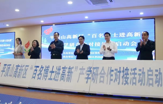 6月6日上午,平顶山高新区“百名博士进高新”产学研合作对接活动启动会在高新火炬园举行。副校长米立伟带领3003新葡官方网站党委书记曹萍以及学院36名博士参加本次活动。