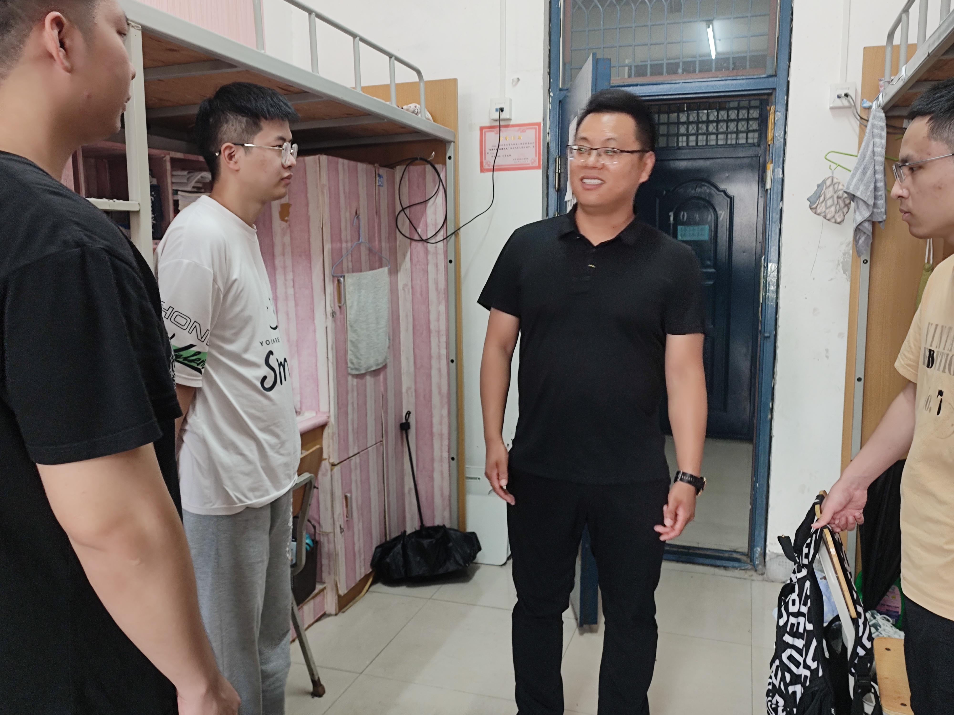 为进一步做好新葡官网暑期留校学生服务管理工作,确保留校学生留校期间学习、生活有序开展,切实维护校园稳定。7月17日-7月18日,新葡官网党委副书记贺国旭带队,组织各年级辅导员深入留校学生宿舍走访了解学生在校生活情况、开展留校学生暑期安全教育工作。