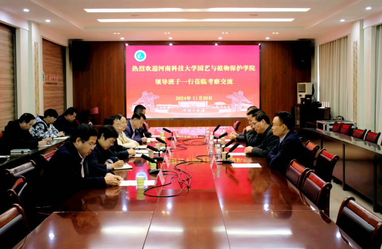 陈根强就河南科技大学园艺与植物保护学院的基本情况做了简要介绍,此次来访希望在科研平台建设、育种技术研发、科技奖项申报、硕士和博士联合培养等方面加强交流合作。