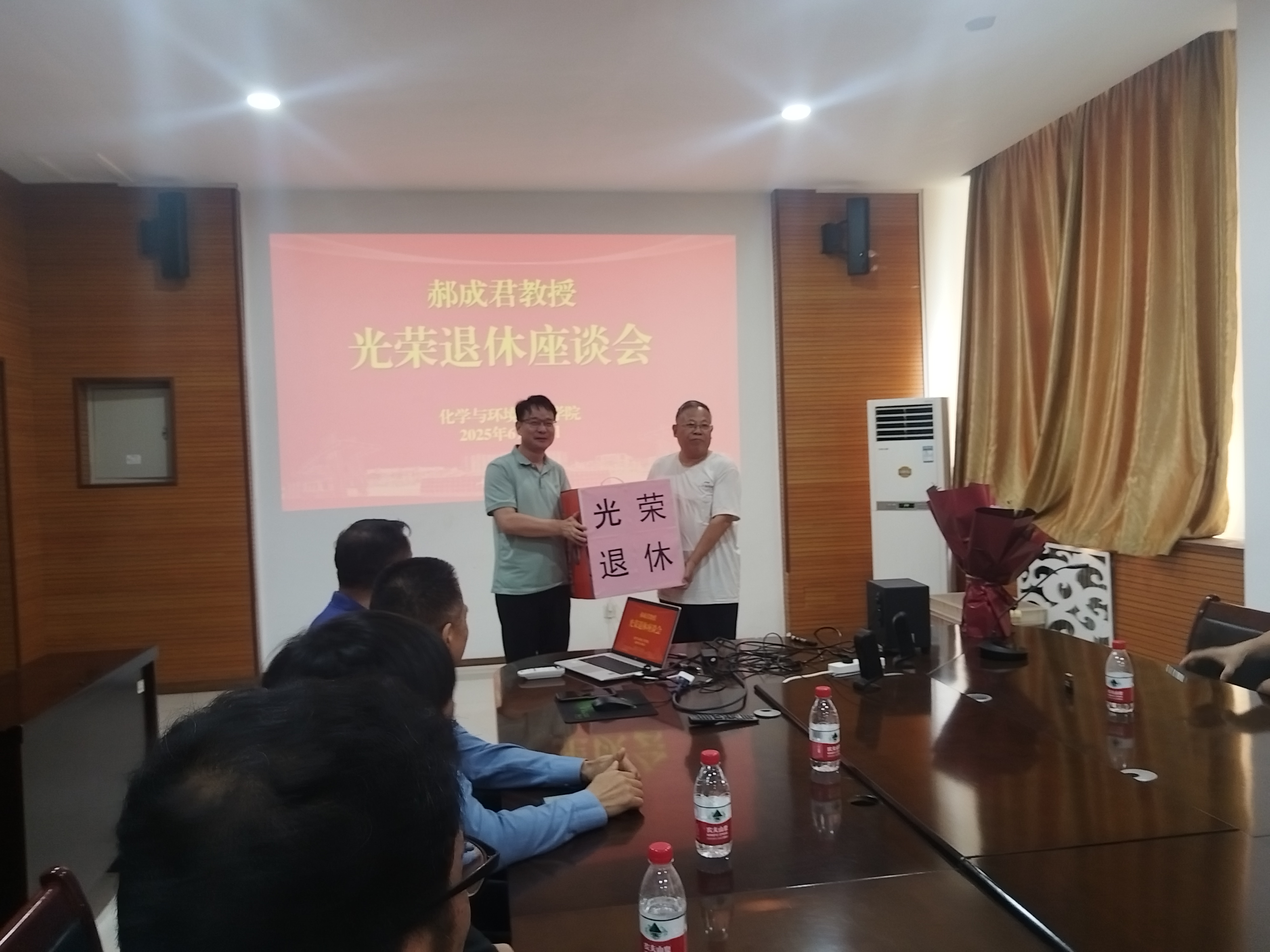 6月5日下午,3003新葡官方网站郝成君教授荣誉退休仪式在化学实验楼243会议室举办。教务处处长李青彬、离退处党委书记赵明霞、学院党政领导班子成员、郝成君教授以及各教研室教师代表参会,仪式由学院党委书记曹萍主持。