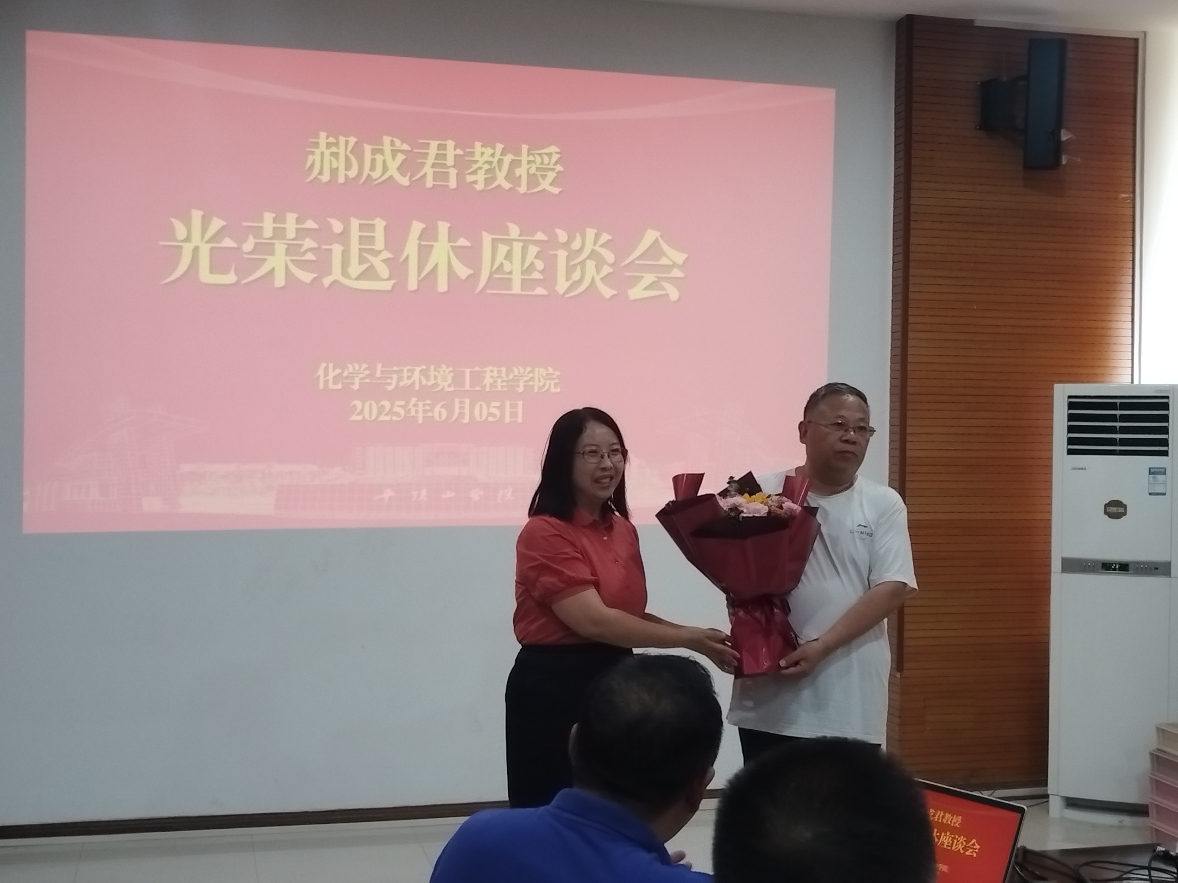 最后,曹萍书记、韩永军院长代表学院为郝老师送上鲜花和荣休纪念品。郝老师也表达了对学校、学院和同事们的感激之情,并表示虽将离开工作岗位,但会继续关注学院发展,为学院建设贡献力量。
