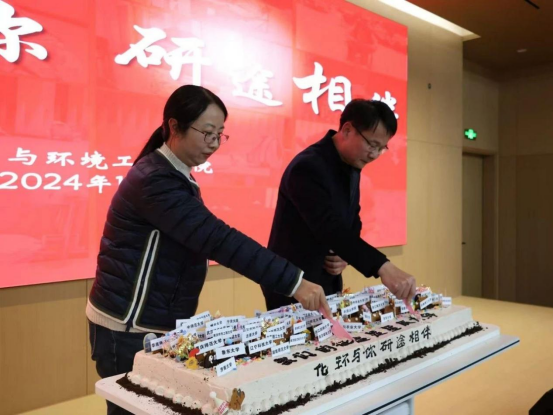 在活动的尾声,一个特别的惊喜等待着考研学子们。学院精心准备了写有每位考研学子报考院校的蛋糕,随着曹书记和韩院长切开“上岸蛋糕”,现场响起了热烈的掌声和欢呼声,气氛温馨而热烈。随后,学院领导与老师们将这份甜蜜的祝福逐一递送到每位同学手中,大家脸上洋溢着幸福的笑容。这一刻,不仅是对考研学子们努力的认可,更是对他们未来征程的美好祝愿。