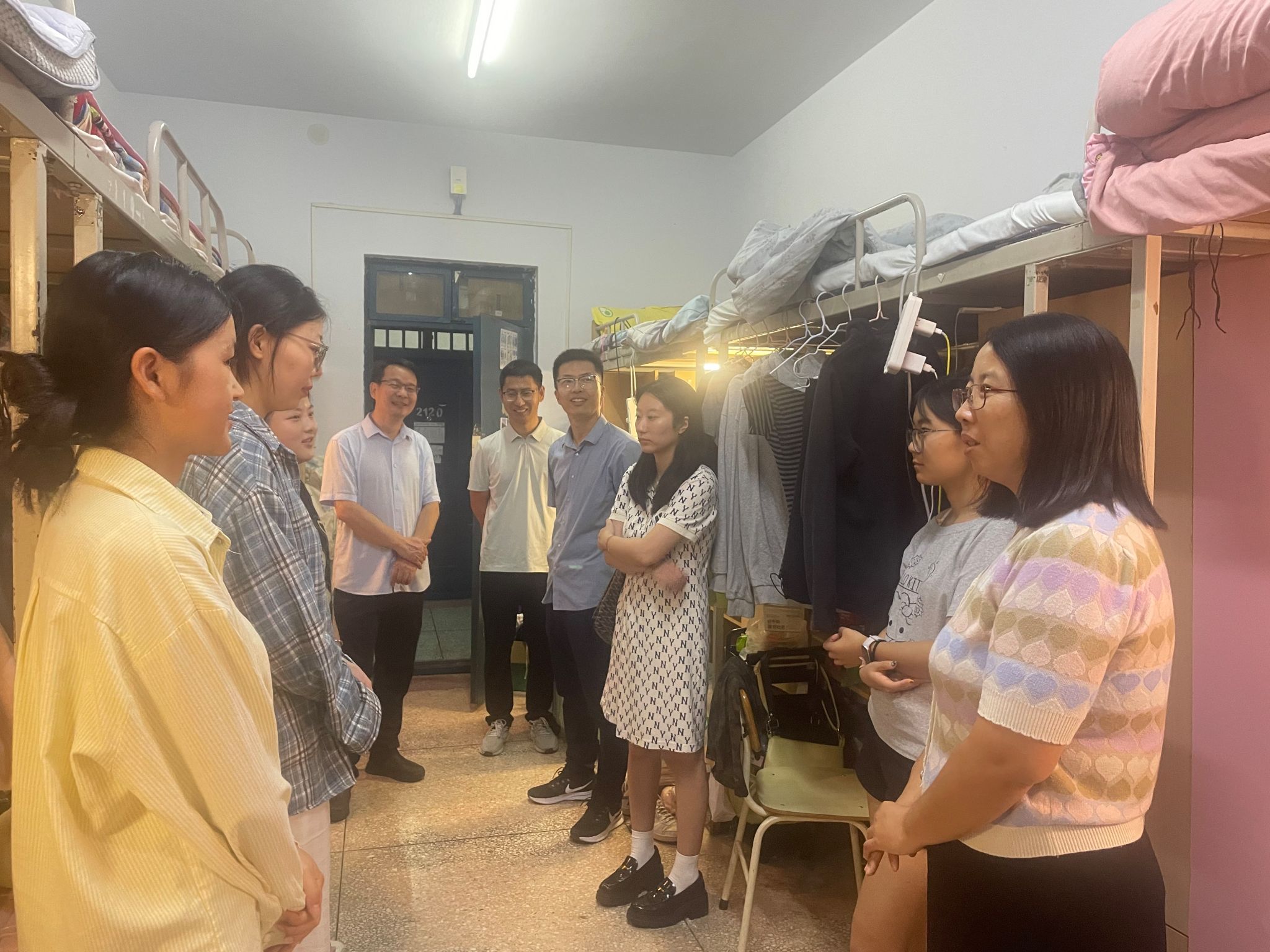 9月2日,学院领导、辅导员一行走访学生宿舍。走访过程中,学院领导与同学们进行了亲切交谈,细致询问了大家暑期生活、返校过程以及新学期的学习规划与目标,耐心听取了同学们对于宿舍环境、生活设施等方面的意见和建议。曹书记叮嘱同学们要尽快调整状态,适应新学期校园生活节奏,养成良好的生活作息习惯,营造积极向上、整洁和谐的宿舍氛围。韩院长勉励同学们要珍惜时光,夯实专业基础,提升综合素养,以饱满的热情投入到新学期的学习科研中去。此外,辅导员们还特别提醒同学们要增强安全意识,注意人身财产安全及用电安全,共同维护校园安全稳定。