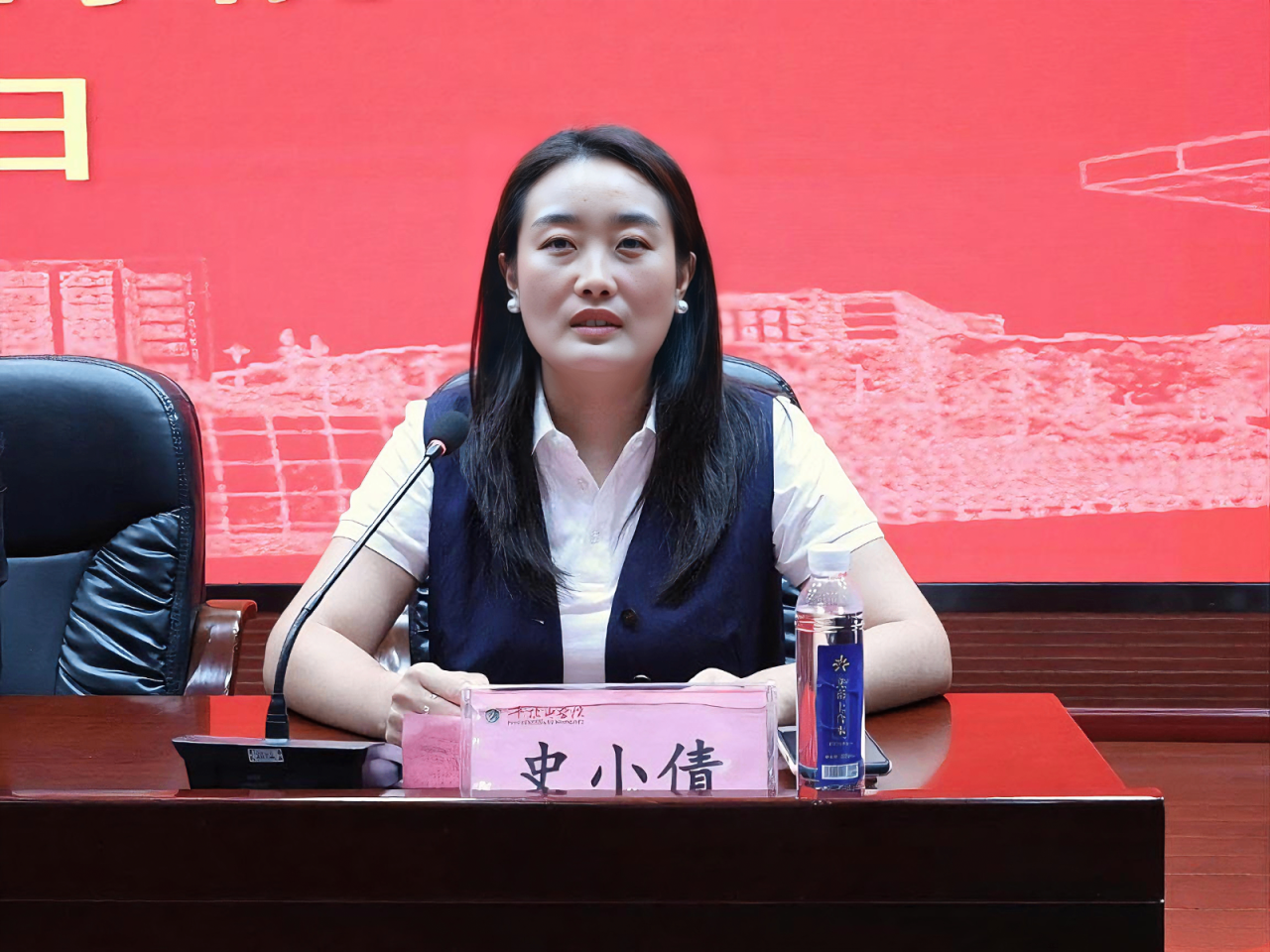史小倩介绍了学院团学工作情况,并以“爱自己,不自我;爱努力,不躺平;爱锻炼,不懈怠;爱集体,不放弃”四个关键词为指引大学成长的方向。
