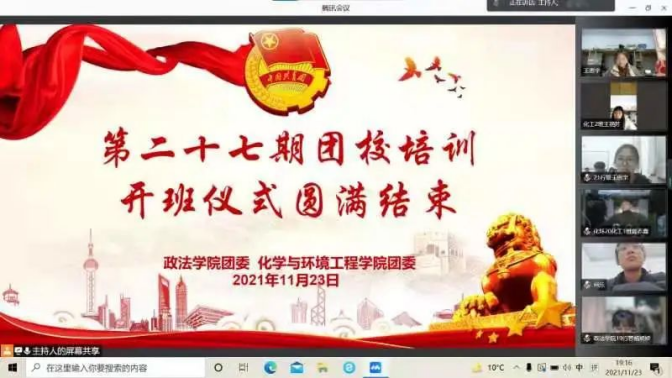为进一步提升青年团员的理论素养、实践能力和综合素质,2021年11月23日,新葡官网与政法学院通过线上形式联合举行了第二十七期团课培训开班仪式暨第一讲团课培训。政法学院团委副书记马延明、辅导员刘盈君、新葡官网团委副书记史小倩、党政办公室副主任李朝鹏出席了开班仪式,来自两个学院的177名青年团员参加了此次培训活动。