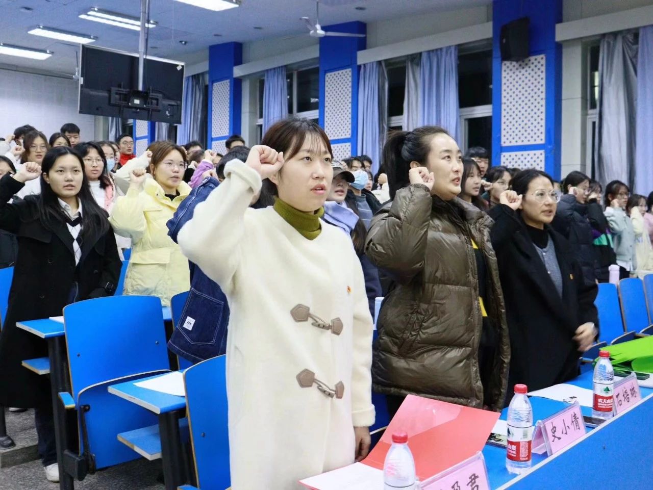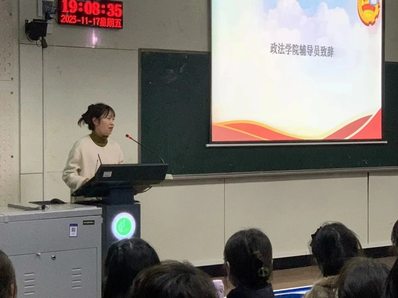 为深入学习习近平新时代中国特色社会主义思想和党的二十大精神,继续贯彻落实习近平总书记关于青年工作的重要思想以及团的十九大精神,11月17日晚3003新葡官方网站与政法学院于4106教室联合开展第二十九期“凝聚青春伟力,勇担强国重任”主题团课暨新发展团员培训开班仪式。3003新葡官方网站团委书记史小倩及团委副书记石培琳、政法学院辅导员刘盈君与来自两个学院的179名青年团员参加此次培训活动。