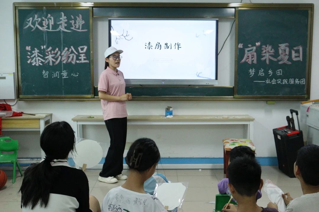 为宣扬中华优秀传统文化,弘扬非物质文化遗产,7月9日,新葡官网“智润童心,梦启乡田”社会实践服务团在鲁山县文智留守儿童学校开展“‘漆’彩纷呈,‘扇’染夏日”创意漆扇制作活动。