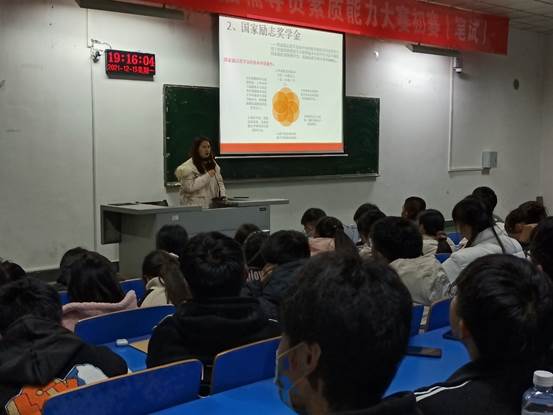 石培琳老师首先对国家助学金、国家奖学金、国家励志奖学金、国家助学贷款、勤工助学、退役复学资助政策等高校家庭经济困难学生资助政策体系的具体内容进行了全面解读。同时详细介绍了学校、学院家庭经济困难学生的认定标准、国家奖助学金评审细则、勤工助学申请流程、助学贷款的申请与发放办法。紧接着,从国家资助政策发展的历史和资助的目的和意义的角度开始,为同学们做了详细的解读,加深了同学们对国家资助政策的了解。最后,她提醒同学们在收到奖助学金之后,要谨防电信诈骗,保护好个人财产安全。并嘱咐大家一定要合理使用奖助学金,避免铺张浪,自立自强、珍惜机会、做好表率,恪守诚实守信的良好品德。