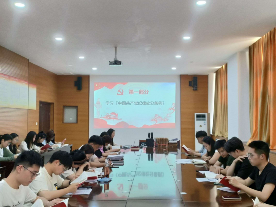 学生党支部书记带领党员精读《中国共产党纪律处分条例》第1~6章,观看《条例》学习视频。通过系统学习,深刻领会党纪学习教育的重要性,在学、悟、守三个方面铸牢思想之‘魂’,补足精神之‘钙’,自觉做到知敬畏、存戒惧、守底线,不越雷池、不触红线。