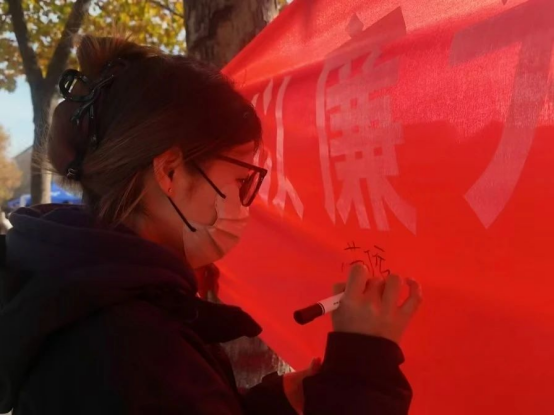 最后,“横幅书‘廉’”环节为活动画上了圆满的句号。师生们纷纷在横幅上签上自己的名字,留下自己的廉洁誓言和美好回忆,这不仅展示了师生们对廉洁文化的支持和认同,还体现了师生们共同构建和谐校园、弘扬廉洁精神的坚定信念。