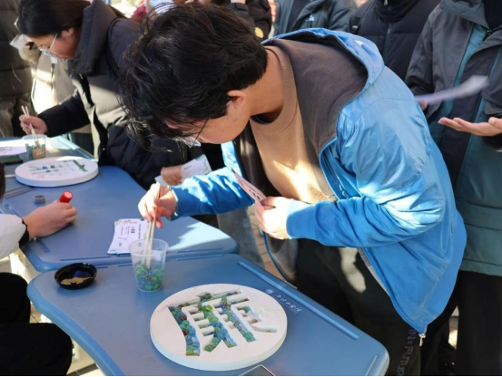 在“夹珠聚‘廉’”环节,参与者们需要用筷子将弹珠从一个盒子夹到另一个盒子中,一分钟内夹够六个弹珠即可获得一枚廉洁章。这一游戏不仅考验了参与者的耐心和技巧,更寓意着在廉洁道路上需要持之以恒、步步为营。许多师生纷纷尝试,现场欢声笑语不断。