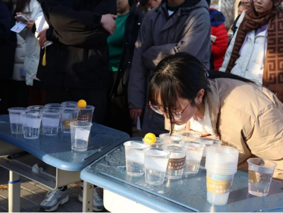 紧接着是“清风拂‘廉’”环节,参与者需要将乒乓球吹过一排带有廉洁标语的水杯,且不得出现“跳球”现象。这一游戏既锻炼了参与者的肺活量和协调能力,又寓意着廉洁之风应如清风拂面,吹遍校园的每一个角落。尽管挑战不小,但仍有不少师生凭借出色的表现成功获得了廉洁章。